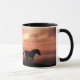 Vaquero rotando un caballo salvaje al amanecer. Este es un fresco país de vaqueros, tazón de café con temática occidental. Los colores del suroeste son muy bonitos.