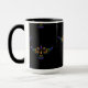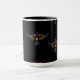 Taza Pájaro abstracto dorado, púrpura y verde sobre neg