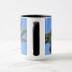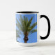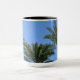 Foto de la cima de tres palmeras contra el cielo azul en una taza de café.