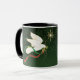 Personaliza esta hermosa Copa de Navidades "Uno de bondad"! Cuenta con una Serena paloma blanca que vuela entre las estrellas llevando una rama de olivo con cintas rojas y verdes que fluyen. Este es un diseño original de la artista Kerry Miller.