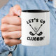 El diseño divertido del palo de golf presenta un lema lindo "Vamos a ir de club" en tipo negro ordenado con dos palos de golf y una pelota de golf en negro y blanco sólido sobre un fondo blanco. Mensaje debajo de esta lista o correo electrónico beachpause@gmail.com con solicitudes de color personalizadas.