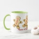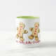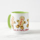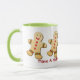Festiva jarra de vacaciones con gráficos de hombres sonrientes de pan de jengibre. El texto rojo personalizado, a lo largo de la parte inferior del texto, dice: "Tener Navidades de Holly Jolly", y puede ser personalizado para leer lo que quieras. Hace una gran taza para las vacaciones o simplemente agrega unas cuantas galletas de Navidad o caramelos para una divertida idea de regalo.