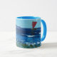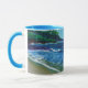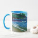Mug de la pintura que hice para Alohi y Lamaku. Representa la playa de Paniau, en el sur de Kohala, con su Wa'a (canoa de vela hawaiana) navegando hasta la playa.