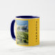 Esto es una taza hermosa para gozar de su favorito pues usted recuerda un viaje a Lisboa. En un lado de la taza hay una imagen de Parque Eduardo VII que pasa por alto el de la Rotonda del marqués Pombal en el final de Avenida DA Liberdade, el extremo de la foto es el río icónico de Tejo. El fondo es un dorado con una manija y un borde azules. Esto es un gran regalo para sí mismo, un amigo o un miembro de la familia de uno las áreas más conocidas de Lisboa. La taza puede ser modificada para requisitos particulares: tamaño, estilo, colores, texto, etc.