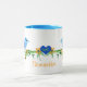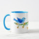 Personalizar esta alegre jarra de motivos de pájaro con tu propio nombre o texto. Presenta un par de hojas de papel cortadas y estratificadas en forma de pájaros planos en ramas de flores, creadas con gráficos de MariR en www.cu4you.com.