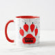 Añade el nombre de tu perro a esta taza de perro con una audaz huella de pata de perro rojo y palabras de amor de perro desvanecidas en blanco.