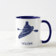 Crea un regalo personalizado perfecto para los kayakers. Incluye un ilustracion kayak en azul marino a ambos lados de la taza con tu nombre u otro texto debajo en negrita con letras azul marino.