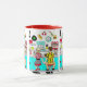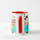 Pareja tomándose de la mano en la taza de café retro de los años 50.