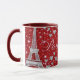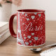 Sip in style with this Paris-inspired romance coffee mug, featuring a rich ruby red background accented with shimmering silver hearts, elegant script, and iconic Eiffel Tower details. Designed to evoke the magic of Paris, this mug adds a touch of glamour and love to every coffee or tea moment. Order yours today!