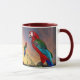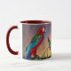 Macaws tropicales 3D vibrantes, únicos y artísticos con plumas coloridas en colores rojo, azul, verde, naranja, amarillo, blanco en naturaleza salvaje bajo el cielo rosa de la puesta de sol , creado por Bulgan Lumini (c).