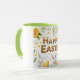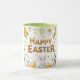 Taza Pascua feliz dorada con conejitos blancos