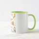 Celebrar Pascua con este alegre y brillante diseño de la taza de Mens. Las palabras "HAPPY EASTER" se exhiben de forma destacada en un cálido tono dorado, rodeado por una deliciosa variedad de flores de margarita blanca y un frondoso follaje verde.