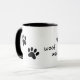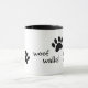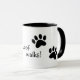 ¡impresiones de la pata con los paseos del tejido! logotipo; taza negra del campanero
