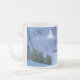 Un paisaje de fantasía 3D lleno de nieve brillante y luces mágicas de hadas. Una hilera de lámparas plateadas que brillan iluminan el camino a través de un paso de montaña nevado rodeado de acantilados rocosos escarpados. El camino cubierto de nieve chispeante está bordeado de oscuros abetos. Al otro lado de la hendidura, un castillo de hadas translúcido y brillante espera al viajero encantado en su viaje a la tierra de las hadas.