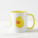 Los childs de goma de un pato del amarillo juegan aislado en un fondo blanco