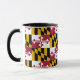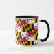 En esta taza distintiva, la abstracta Bandera del Estado de Maryland en oro, negro, rojo y blanco se repite a través de la superficie, haciendo un patrón colorido e interesante.