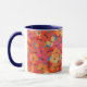 Taza Patrón de adornos amarillos Naranja rosado en azul
