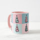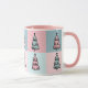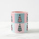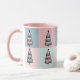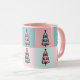 Presenta un patrón de hermosos árboles y cuadrados de Navidad en una paleta de colores rosa y sabio.