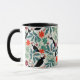 Patrón de Puffin colorido y divertido con mucha vegetación exuberante sobre fondo beige cálido. Colores vivos verdes y naranjas.