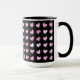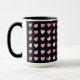 Un lindo patrón de corazones en una paleta rosa, en un fondo negro.