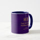 Personalizar y personalización de esta moderna taza diseñada con un moderno patrón de mini cuadrados púrpura y un simple y minimalista Monograma de oro de 2 letras. Regale esta elegante taza a sus empleados, clientes y vendedores. Producto promocional profesional y atractivo para su empresa.