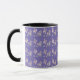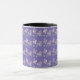 Patrón de dogwood sobre fondo morado en una taza. Bonito patrón de pétalos de madera de perro. Beba tu café matutino con un toque de primavera.