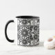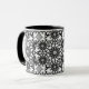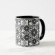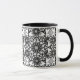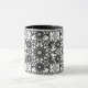 tazón de café en un patrón de mandala de 12 puntos en tonos de grafito y gris plateado, acentuado con negro y blanco