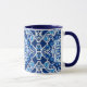 tazón de café con ocho puntas, mosaico, estampado en índigo oscuro y azul cobalto, acentuado con blanco