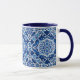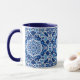 Mug en ocho puntas, mosaico, patrón estrella en índigo oscuro y azul cobalto, acentuado con blanco