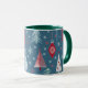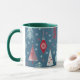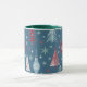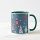 Patrón de Navidades de invierno. Estilizados árboles de Navidad rojos, verdes, bolas de Navidad sobre un fondo azul.