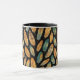 Comience el día con un toque de encanto. Esta atractiva taza presenta un elegante patrón de plumas de boho con un elegante fondo negro, creando un sorprendente contraste moderno y terrenal. Las plumas están decoradas en tonos suaves y cálidos, añadiendo un ambiente caprichoso e inspirado en la naturaleza, perfecto para mañanas acogedoras o momentos atentos.