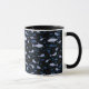 Patrón de silueta de tiburón negro y azul que se repite sin fisuras. Para los amantes de los tiburones y los aficionados al velero.