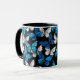 Taza Patrón oscuro sin foco con mariposas azules morfo