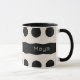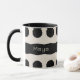 Taza Patrón único de monograma de polka blanca negra