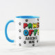 Paw imprime el patrón Paws Off! Colorida taza de impresión. Personalice esta taza cambiando "Aaron" por su propio nombre.