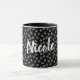 Dibujar taquilla con el nombre. Patrón de impresión de pata gris sobre fondo negro y nombre personalizado blanco. Personalice reemplazando el nombre de ejemplo Nicole por su propio nombre o nombre personalizado o texto de su elección. Increíble idea personalizada de regalo para una madre de gato, dueña de perro o cualquier otro amante de los animales mascotas.