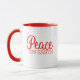 Envíen un mensaje positivo y esperanza cuando den esta taza de Navidad de "Paz en la Tierra" como regalo de Navidad o regalo de Hanukkah este año. Esta taza de regalo para Navidades presenta un guión moderno y moderno Tex en un alegre color rojo. Perfecto como regalo para un ser querido o amigo.