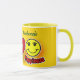 This Peace, Love & Happiness mug features playful peace, heart, and smiley icons set against a warm golden yellow background designed to brighten every sip.