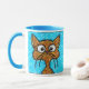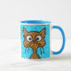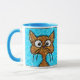 Un gato personalizado marrón claro y suave con ojos grandes, bigotes largos y una pequeña nariz rosada, sobre un fondo azul. Personalizado digital original de Taylor Addams.