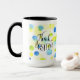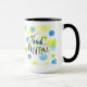 Caligrafía moderna cita inspiradora - piensa positivo - en el fondo de los puntos de color azul y verde| Bigstock® - Todos los derechos reservados.