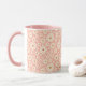 Las flores pequeñas en el fondo rosado es una taza linda y chica.