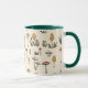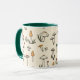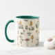 Mug en un caprichoso patrón de hongos con coloridos hongos en tonos rojos, naranjas, verdes y blancos. Diseminados por un fondo beige, los toques frondosos realzan la estética natural, lúdica y orgánica,