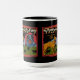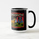 Esta taza fue diseñada por los artistas Ana LePere y Susan Phillips de Carolina del Norte, sobre la base de los cajones icónicos del embalaje de la producción del comienzo del siglo XX. Muestra ganado rojo y azul los perros - o los heelers - contra la roca de Ayers de Australia con una manada del ganado.  El perro del ganado de Australia se fija contra un campo de bumeranes. El texto arriba: No acepte ningún substituto cuando la inteligencia, la lealtad y la impulsión son cruciales. El texto abajo:  Elija la marca del ACD cuando usted necesita un perro que usted puede contar encendido.