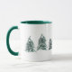 Este Snowy Pine Trees Mug presenta una impresión de mi simple pintura de pinos cubiertos de nieve.  Perfecto para su mesa festiva.