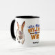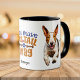 "Tú haces mi maldición de cola" declara esta linda jarra. Un adorable perro de Bull Terrier corre hacia ti a cada lado del texto. Corta para el terrer dueño, pero apropiada para cualquiera. Puede agregar el nombre de alguien en el centro inferior o borrar el texto, si lo desea.