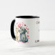 Coffee negro de dos tonos / té / chocolate caliente Mug idea de regalo para él / esposo / novio / compañero. Perfecto para un Aniversario, El día de San Valentín, un cumpleaños o sólo porque quieres mostrarle lo que significa para ti. Con dos perros lindos y corazones de amor. Personalizar con un nombre / amarte es fácil. Negro, blanco y marrón.