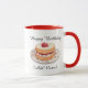 Corta tarta de fresa dulce de cumpleaños tazón de café con mango rojo y dentro. Simplemente agregue el nombre correcto en el área personalizar.