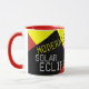 Fondo rojo, rectángulos negros y amarillos. Texto con puntos de los colores blanco, amarillo y negro Eclipse solar modernista. Por otro lado, la explicación del eclipse solar es la siguiente. ¿¿¿¿¿¿Eclipse es la épica batalla entre el sol y el alcohol casero??? UGH, Bueno... ¿Qué estoy bebiendo? Un tazón de café tan vanguardista (la única singularidad está garantizada) para cualquiera que celebre el Gran Eclipse Solar Total Estadounidense. ¡Personalizable. Realmente puedes cambiarlo todo. Simplemente utilice el botón Personalizar y agregue o elimine todo lo que desee. Sean creativos y tengan prisa, los eclipses solares no esperan a nadie.