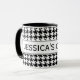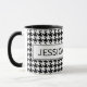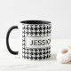 Taza personalizada con el modelo lindo del houndstooth. Diseño elegante con la impresión del control del diente de perros. Fondo de Dogstooth blanco y negro. Idea linda del regalo para el hogar o la oficina.