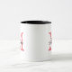 Taza personalizada con la letra conocida elegante del monograma. Coffeemug con monograma del campanero del vintage con las letras elegantes de la escritura. Cumpleaños o idea lindo del regalo del favor de fiesta para los hombres y las mujeres. Taza elegante 11oz con colores rosados y negros coralinos elegantes. También disponible como taza de gran tamaño de la extra grande y grande ir taza del viaje. El doble echó a un lado drinkware del diseño para la oficina o el hogar.